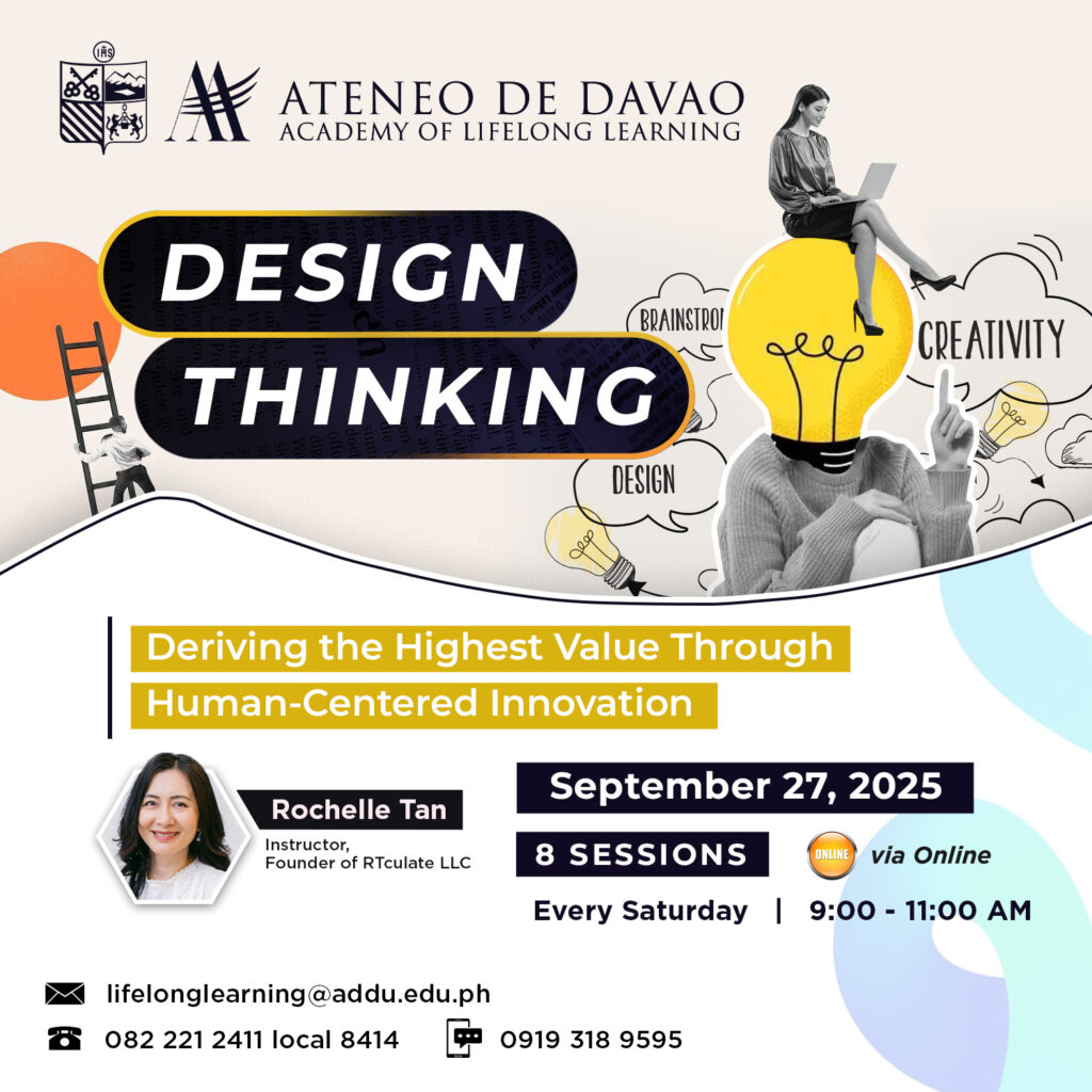 Enroll now for only Php 4,500.00! This includes your own RTculate Design Thinking Digital Toolkit for continued learning and application. Send us a private message or email us at courses.lifelonglearning@addu.edu.ph with the subject: Design Thinking.